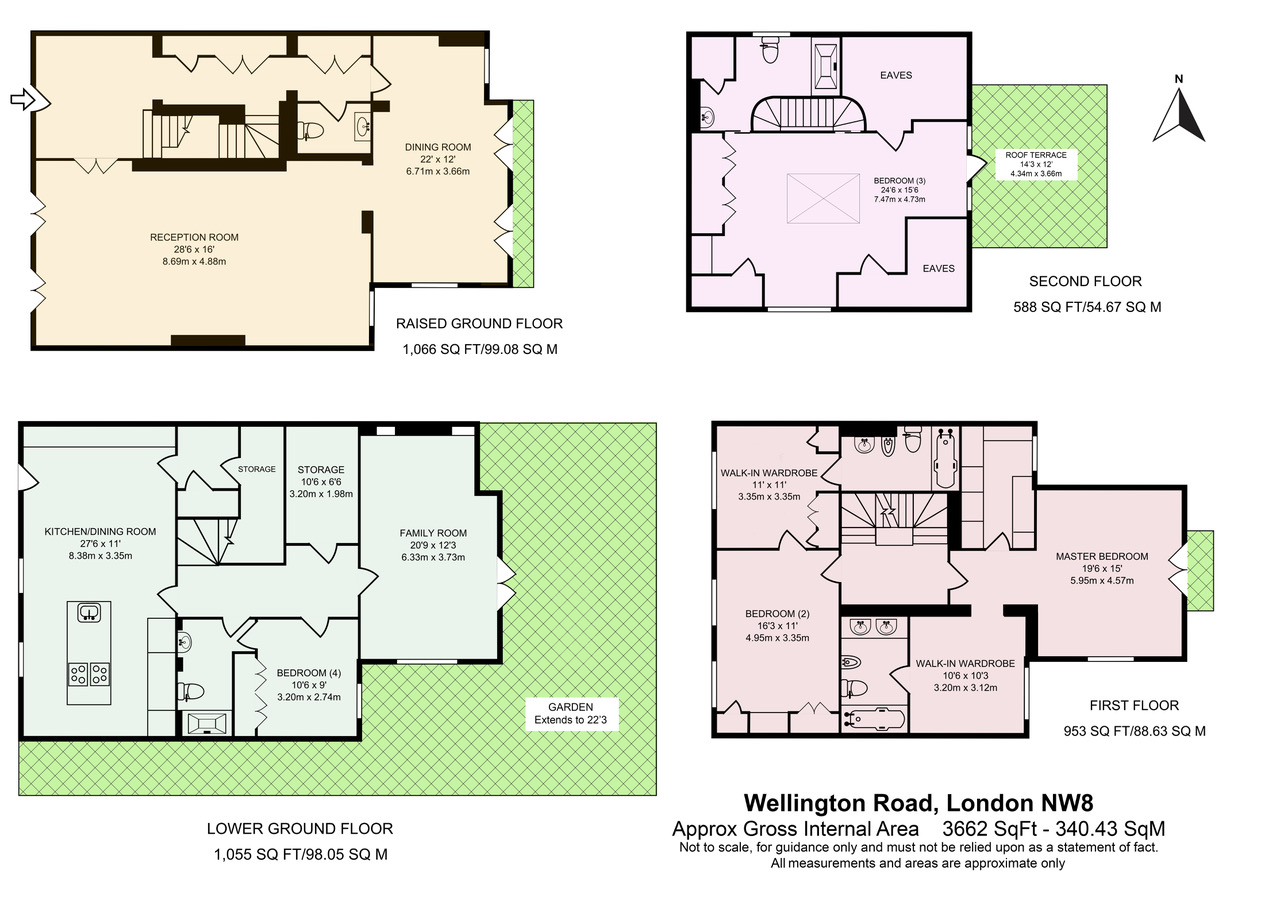 A rare opportunity to acquire a gated four bedroom detached family home in the heart of St. John’s Wood NW8. This fabulous house offers spacious living accomodation across 3663 sqft, complete privacy, all en suite bedrooms, and outdoor spaces including a private garden and roof terrace. Furthermore, it features a modern open-plan kitchen - dining area, grand living room, large principle suite and further three bedrooms each with luxurious en suite bathroom. Situated on Wellington Road, the property is within walking distance of St. John's Wood Station, world known Wellington Hospital, renowned local schools and a variety of shops and restaurants. For outdoor leisure, Regent’s Park just around the corner among nearby green spaces and charming Primrose Hill. This stunning home offer the perfect retreat in the heart of the city. Excellent transport links provide quick access to Central London, making this a highly desirable family home in one of London’s most prestigious locations.